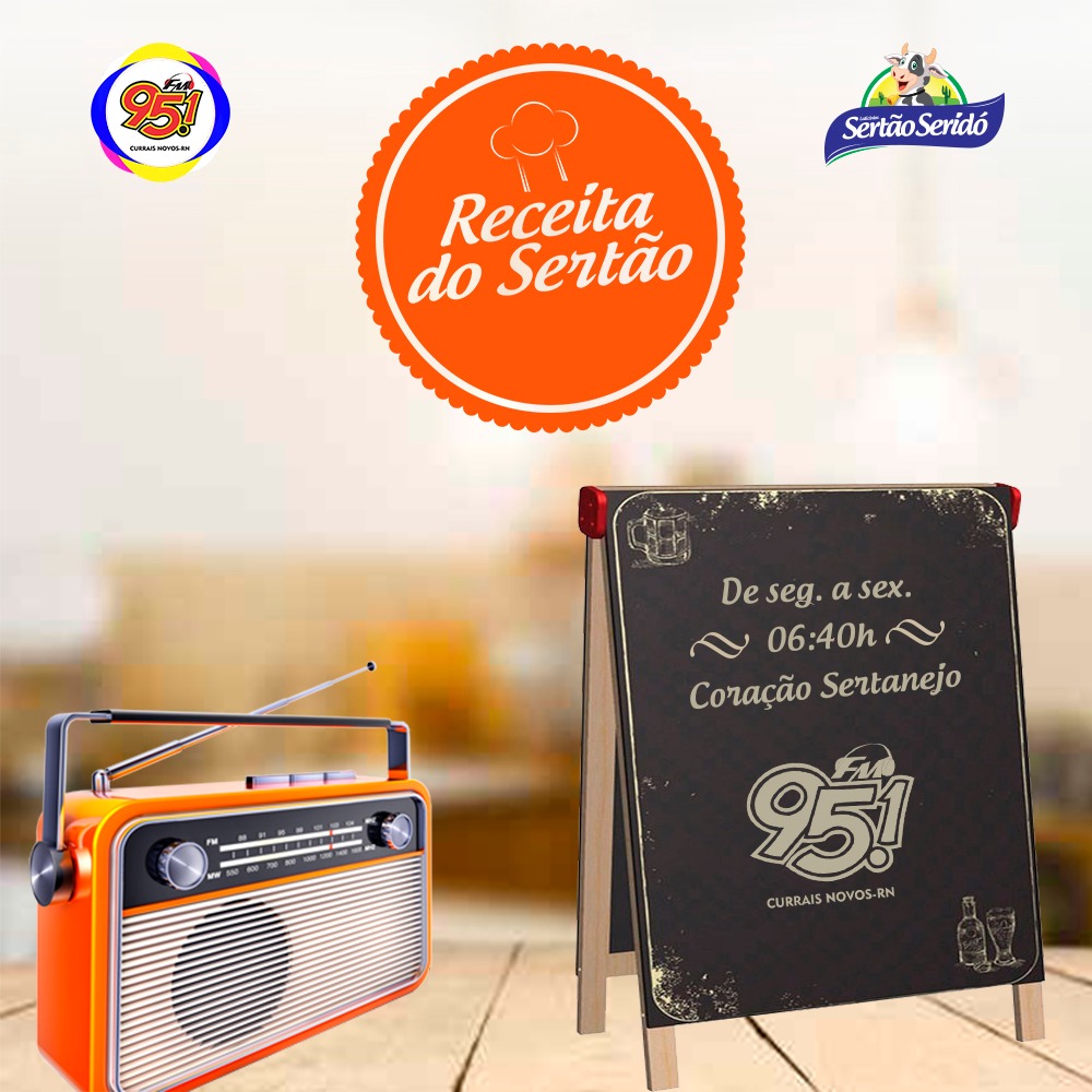 De segunda à sexta, ás 6:40h da manhã suas receitas tem um toque mais gostoso e bem regional. Sintonize o rádio na 95,1FM e acompanhe a “Receita do Sertão”. Tem cada receita gostosa… Hummm! De segunda à sexta, ás 6:40h #Ligadaemvocê #radio #laticínios #sertãoseridó Postado em 10 de abril de 2018 - 8:53h Publicidade No Banner to display Últimas Notícias ‘Ben 10’ é preso por tráfico de drogas em Parnamirim Após paralisação na saúde, governo injeta R$ 3,2 milhões e promete normalizar serviços no RN Lei no RN proíbe condenados por maus-tratos de atuar no serviço público ESPAÇO PUBLICITÁRIO RN registra 5 casos de afogamento em uma semana; bombeiros alertam para período de chuva Suspeitos morrem após perseguição e troca de tiros com a PM na Avenida Tomaz Landim em Natal Perseguição policial causa movimentação intensa na Avenida Tomaz Landim Motorista embriagado é preso em flagrante após perseguição no Centro de Cerro Corá Confusão entre cunhados acaba em morte com golpe de enxada Elemento é preso no Acre por aplicar um golpe em Tibau/RN via OLX Links Parceiros 190 RN André Fotos Blog de Assis Blog de São Vicente Blog do Cardoso Silva Blog do F Silva Blog do Montoril Blog do Rivanildo Júnior Ceará Mirim Livre Click Picuí CN Agitos CN Classificados CRN De Olho na Notícia Dilacierra Martins Difusora Jucurutu Édipo Natan Edmilson Sousa Edson Dantas Fim da Linha Focoelho G1 RN Icem Caraúbas Jair Sampaio Jean Souza JCN Jota Dantas Lagoa Nova Destaque Magno César Magno de Castro Mossoró Hoje Na Semana Notícias Nossa Pau dos Ferros Nosso Paraná Nova Cruz Oficial O Câmera O Comunicador Parnamirim Agora Os Amigos da Onça Passando na Hora Paulinho Barra Pesada Plantão de Notícias Portal BO Portal no Ar OP9 Rádio Ouro Branco FM Repórter Seridó Senadinho Macaíba Sidney Silva Tenente Laurentino Agora Toscano Neto Touros Urgente Tribuna do Norte VNT On Line Usuários on line 232