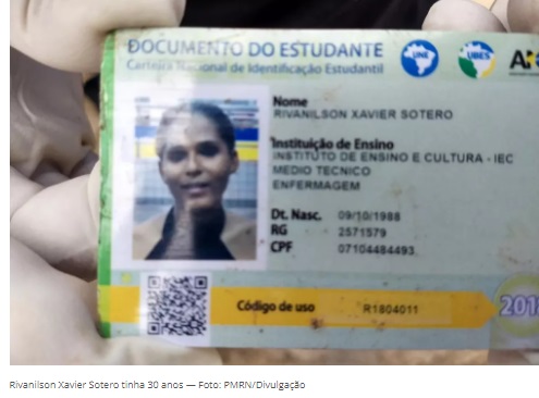Um estudante de um curso técnico de enfermagem foi assassinado em Parnamirim, cidade da Grande Natal. O corpo de Rivanilson Xavier Sotero, de 30 anos, foi achado na manhã desta quarta-feira (12) em um campo de futebol próximo da maternidade Divino Amor. Ainda não há pistas dos criminosos.