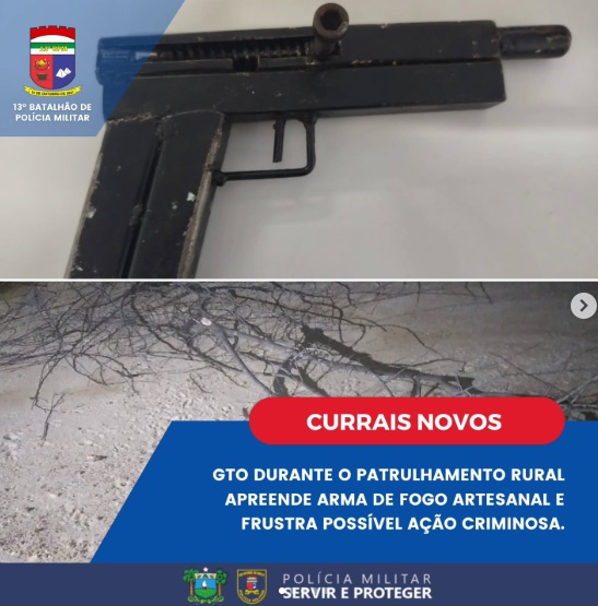 GTO EM CURRAIS NOVOS APREENDE ARMA DE FOGO ARTESANAL E FRUSTRA AÇÃO CRIMINOSA DURANTE PATRULHAMENTO RURAL