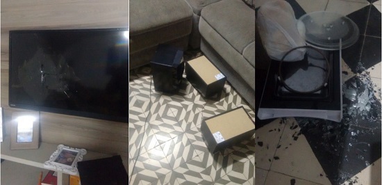 ANDERSON ALEGOU QUE SUA COMPANHEIRA QUEBROU SEU APARELHO CELULAR DURANTE UMA DISCUSSÃO E QUE ELE IRIA EMBORA PARA RECIFE ONDE MORA SEUS PAIS. O MESMO NÃO COMENTOU O QUE TERIA ACONTECIDOS COM OS OBJETOS QUEBRADOS.