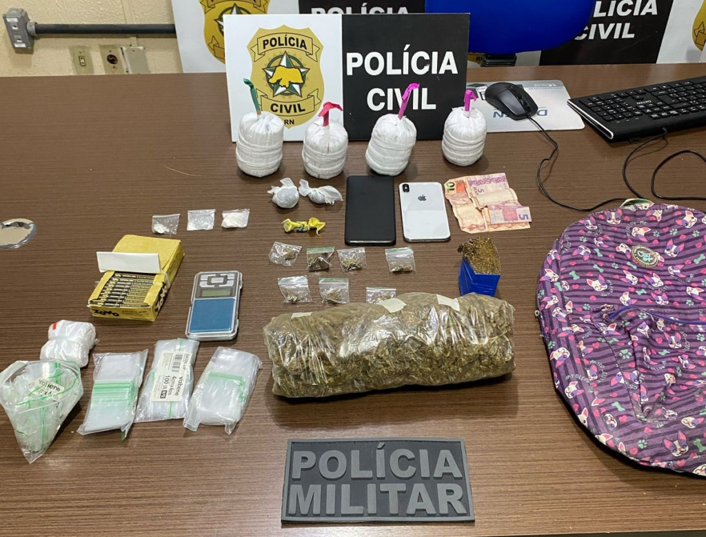 Policiais civis da 20ª Delegacia de Polícia (DP) de Macaíba, com apoio do 11º Batalhão da Polícia Militar (BPM), prenderam em flagrante, nesta terça-feira (8), uma mulher de 22 anos, pela suspeita na prática do crime de tráfico de drogas e associação para o tráfico.