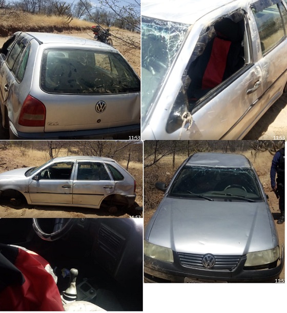 A guarnição comandada pelo Cabo PM Jarbas se deslocou ao local e encontrou o veículo todo amassado e sem as rodas de um dos lados. O mesmo se envolveu em um capotamento, possivelmente durante a madrugada.