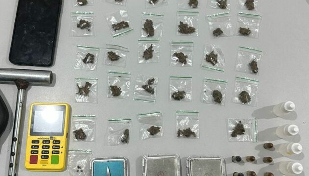 Diante da atitude, foi realizada a abordagem policial, sendo encontrada com o suspeito uma bolsa contendo quantidade significativa de substância análoga à maconha já fracionada, além de munições calibres .38 e 9mm e uma balança de precisão, material comumente associado ao comércio ilegal de entorpecentes.