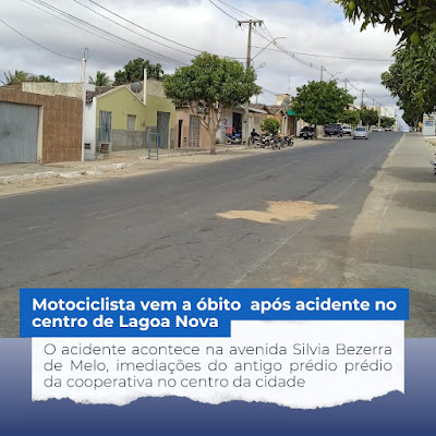 O primeiro acidente com vítima fatal registrado em 2026 em Lagoa Nova ocorreu na madrugada desta quinta-feira (15), no centro da cidade.