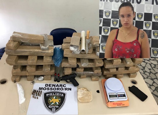 Mulher foi presa com 59 quilos de drogas e pistola em Mossoró