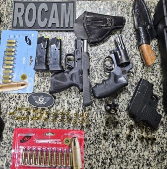 Entre o material recolhido estão uma pistola, um revolver, um simulacro e diversas munições. A ação ocorreu durante patrulhamento tático, quando os policiais conseguiram localizar os suspeitos e efetuar as prisões.