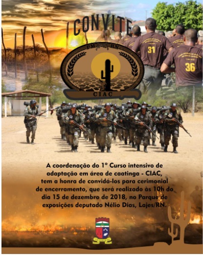O SOLDADO PM GUILERME LOTADO NA 3ª CIPM FOI O PRIMEIRO COLOCADO DO 1º CURSO INTENSIVO DE ADAPTAÇÃO EM ÁREA DE CAATINGA “CIAC” REALIZADO DURANTE 10 DIAS NO MUNICÍPIO DE LAJES/RN