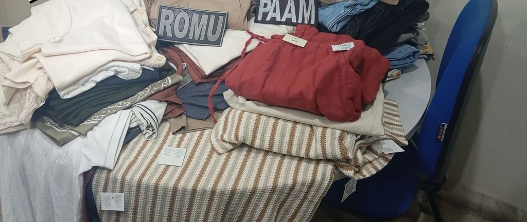Durante a ação criminosa, os suspeitos furtaram quase 100 peças de roupas da loja Renner, causando um prejuízo estimado em aproximadamente R$ 10 mil.