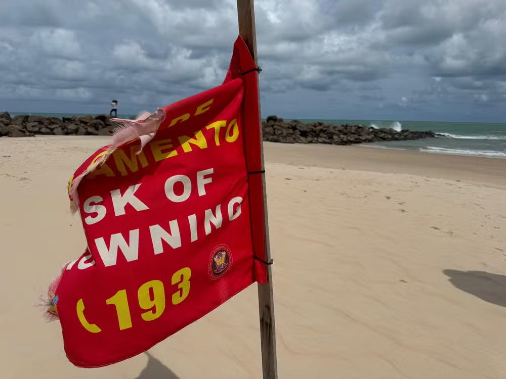 “Geralmente as nossas bandeiras vermelhas vão indicar que, em frente a elas, existe uma corrente de retorno. Então sempre que alguém sentir que está sendo puxado para alto-mar, a gente sempre orienta as pessoas a manterem a calma. Você se deixa ser arrastado por um tempo, se mantendo sempre na superfície da água e, após esse arrastamento, você nada lateralmente”, explicou o tenente Vidal.