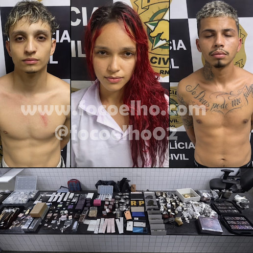 A Polícia Militar prendeu um trio suspeito de assalto a um salão de beleza no conjunto Cidade Satélite, na zona Sul de Natal. Os três suspeitos – dois homens e uma mulher – estavam em um motel comemorando o crime. O que chama a atenção é que um bebê estava no local com a suspeita.